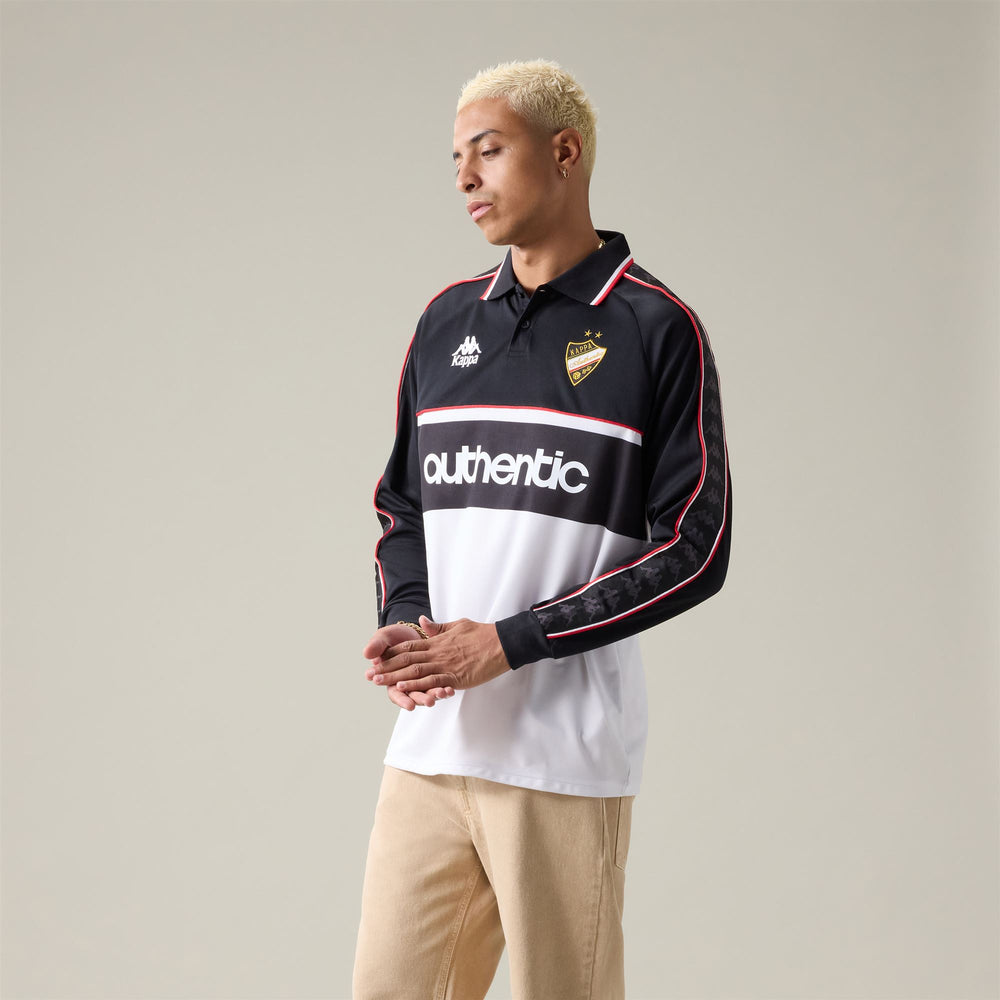 Crest and Kappa Authentic logo on chest.